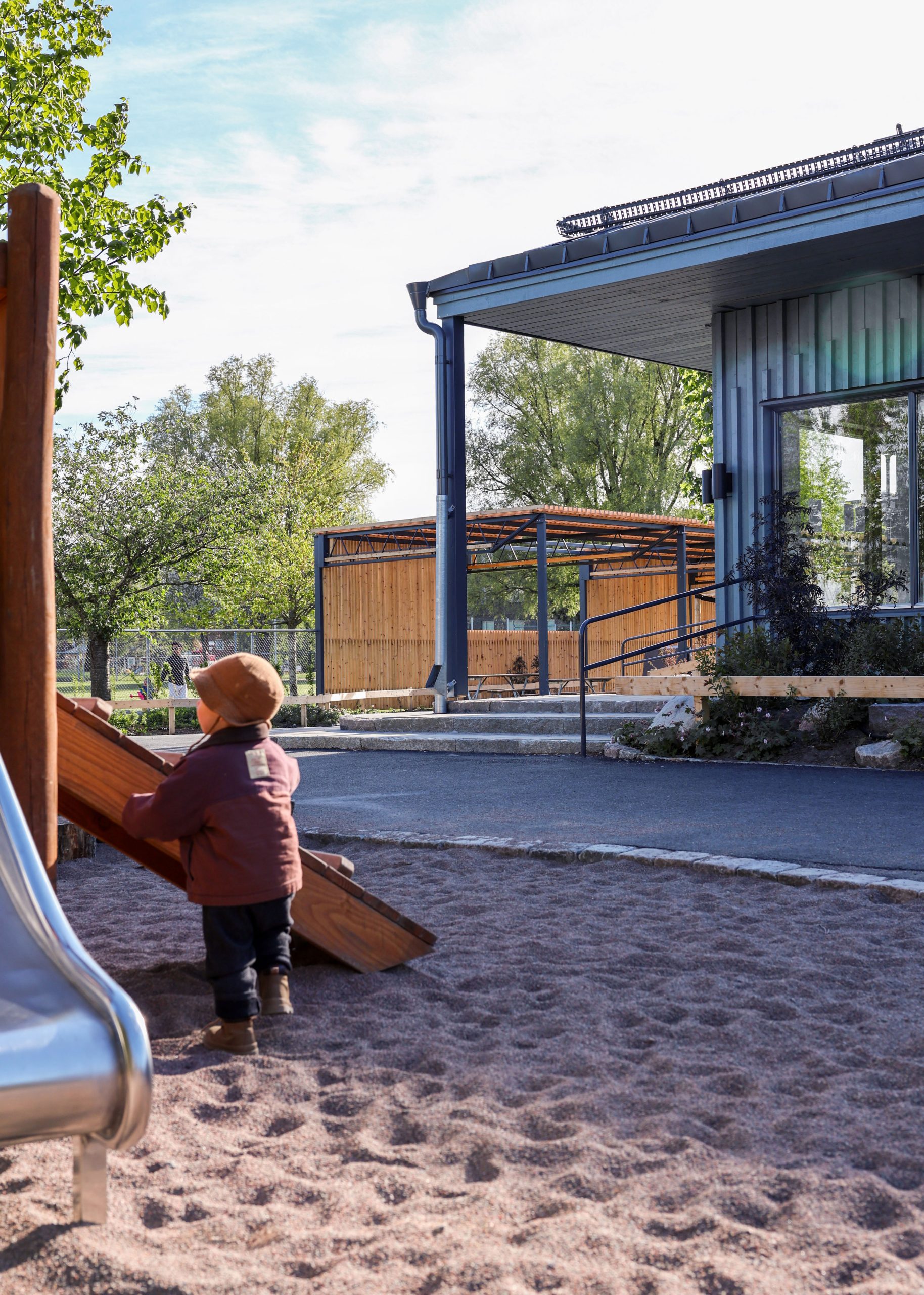 Förskolan Hoppet 2 i Backa öppnade våren 2025. Här har en tidigare nedgången skolbyggnad fått nytt liv som en trygg, välkomnande och hållbar plats för barn och pedagoger. Kaka Arkitekter har skapat en paviljongliknande byggnad med en central atriumgård som släpper in naturligt ljus. Förskolan är öppen och inbjudande från alla håll samt uppfyller högt ställda klimatkrav.